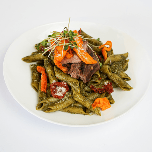 پنه ، فیله گوساله ، سس اسفناج، پنیر پارمسان، چیپس هویج، میکرو گرین، گوجه خشک
