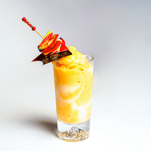 پوره پشن فروت به همراه انبه و شیر نارگیل در کنار مغزیجات رست شده