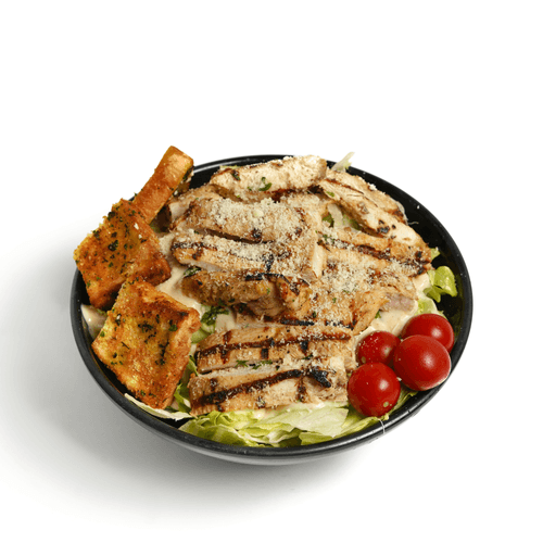 کاهو، مرغ گریل شده ، نان کروتانز ، گوجه چری ، پنیر پارمسان ، سس سزار مخصوص