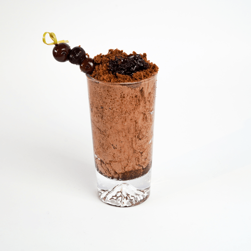 ژلاتو شکلات کارات تلخ همراه با کیک برانی و پودر شکلات هلندی