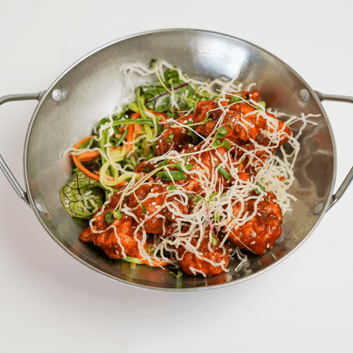 بال سرخ شده به همراه سس پینات باتر