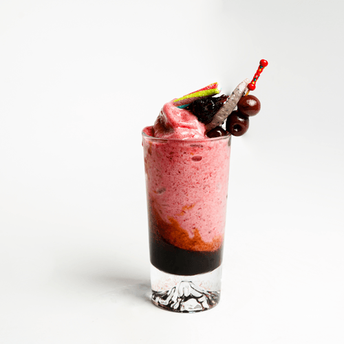 پوره شاه توت و موز به همراه توت فرنگی و آلوئه ورا در کنار سس انار و زنجبیل
