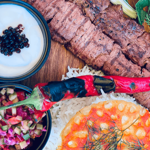 ٢ سیخ فیله/سالاد شیرازی/ماست/سبزی خوردن..Iranian rice/2skewers fillet/shirazi salad/yogurt/vegetable