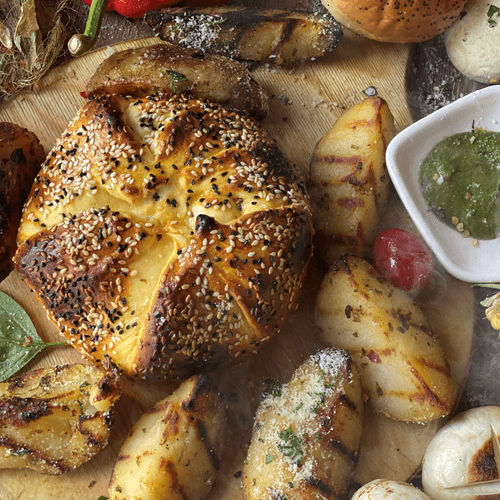 گوشت خالص برگر/ رست بیف/ سس قارچ/پنیر گودا/ نان با خمیر مخصوص..burger meat/roast beef/mushroom sauce/gouda cheese/bread with special dough