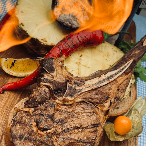 500 گرم گوشت گوساله ،سبزیجات بخار پز،سس قارچ..500g veal meat/steamed vegetables/ mushroom sauce