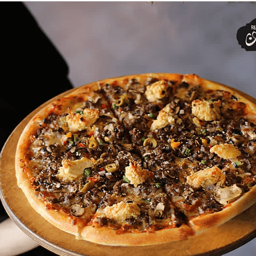 پنیـــر/چیکـــن استریپس/گوشـــت چـــرخ کرده/قارچ/پیاز/فلفل دلمه ای/ارگانو..cheese/chicken strips/mince meat/mushroom/onion/sweet pepper/olive/organo